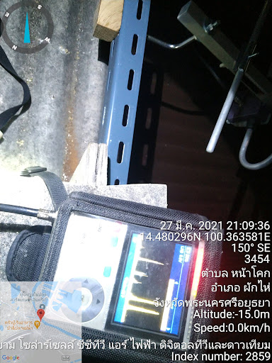 ไม่ได้ไปครับ คนหาพิกัดดูสถานีส่งสัญญาณทีวีดิจิทัล ปรากฎว่าความถี่กวนกับสถานีที่ใบหยก แล้วจุดที่รับก็ดันด้านหลังของสัญญาณที่ส่งมา หันรับที่ใบหยก ก็โดนเสาส่งมือถือกวนอีก ว่าวันเสาร์หน้าจะซื้อ อปก.ตัดสัญญาณมือถือที่เข้ามากวนออกไป กับเปลี่ยนเสาอากาศที่มีเกนการรับสัญญาณได้สะอาดไม่มีคลื่นความถี่มือถือเข้ากวนได้ติดให้แทน หรือไม่ก็ลองหันเสาอากาศไปรับที่สถานีสิงห์บุรีแทนใกล้กว่ารับที่ใบหยกครึ่งทาง ได้ผลยังไง เดี๋ยวอาทิตย์หน้าจะมารีวิวให้ชม วันนี้ดูรูปที่ผมไม่ปลื้มกับสัญญาณที่รับได้เป็นอย่างมาก เพราะส่วนใหญ่ผมต้องทำให้รับได้ที่ตัวเลขแตะ ๓๐ หรือใกล้เคียงมากกว่านี้ครับ ถึงจะไว้วางใจ ไม่ต้องกลับมาแก้งาน ถ้าเกิดระบบการส่งสัญญาณมามันอ่อนลง ก็ยังคงดูได้ปกติ ถ้าเราทำแบบแค่นี้ก็ดูได้ วันหน้ามีปัญหาต้องไปแก้ไขแน่นอน เพราะคนดูทีวี จ่ายเงินก็เพื่อความสุขตน ไม่ใช่ดูๆไปเดี๋ยวเป็รโมเสค เดี๋ยวภาพหยุดค้าง เสียอารมณ์การดู แบบนี้ผมไม่ส่งงานเก็บเงินครับ...
