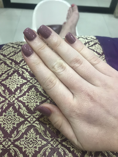 Read moreDo not recommend this place for a manicure! The woman doing my nails did not care about the outcome at all. Filing was done very quick and rough, it felt like she was ripping rather than cutting the skin around my cuticles and the nail polish was the worst. They clearly didn't care that the nail polish was very uneven and spotty so I had to tell them that I wasn't happy with it. They removed the polish and I had to chose a different color. The second try was slightly better but it's still uneven, with cotton in it, bubbles and uneven spots. I didn't say anything because I didn't have time to do a third try and was sure that it wouldn't have been better. The pictures are from the second color, I didn't have time to take pictures of the first attempt. Seems like a tourist trap where you get what you pay for (250 Baht). They take visa card but charge 5% fee. The place also wasn't the cleanest. To be fair, the girl next to me got gel color and seemed to be happy with it, so it probably depends on the employee you get to do your nails. Still...