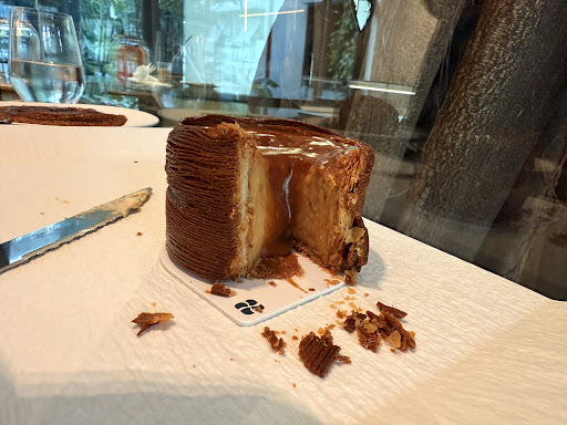 🌟 #Millefeuille: vanilla & Smoked vanilla gel ดูชั้นแป้งที่เชฟทำสิ ชัดไหมว่าฝีมือจริงๆ แป้ง กรอบ กร๊วม เบา Flaky แต่หอมหนักๆ รสชาติรสสัมผัส Rich มีมิติ ถึงวัตถุดิบ ด้านบน glaze เคลือบบางๆ แป้งไม่ยมเลย อร่อยดูดนิ้วอ่ะ วนิลาครีมเทกเจอร์ละมุน แบบรับรู้ได้ถึงความซับซ้อนของรสชาติ อร่อยมากครีมวนิลาสลับกับสโมควนิลาเจล กลิ่นวนิลาเจลรมควันมีความสโมคกี้ที่หอมแปลกแต่ดีเข้ากันเฉย