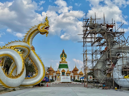 The temple is located next to Huai Wang Nong Park. There're two beautiful giant nagas at the front of the temple. One naga is still under construction. Walk up the steps and toward the back to see this beautiful and elegant...