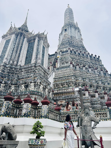 Wat Arun is one of the most fascinating temples in Bangkok and an absolute must-visit when you're in Thailand. It's a religious site, so appropriate dress is required—girls need to cover their shoulders and knees, but you can rent clothing if needed.