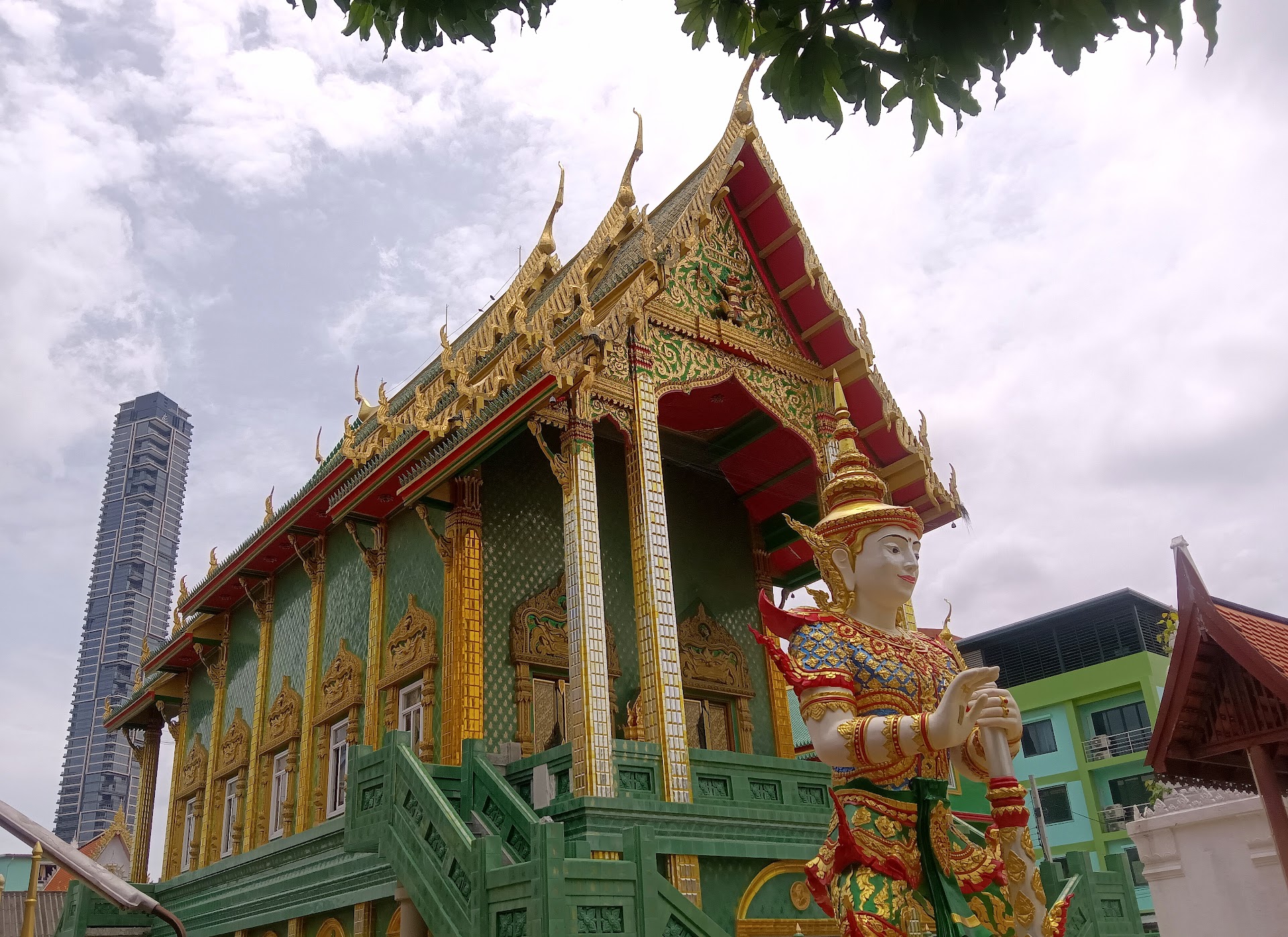 Read moreวัดเก่าแก่ขนาดใหญ่พอควร ตั้งในสมัยรัชกาลที่ 4 บนซอยจันทร์ 42 เข้าซอยมาวัดจะอยู่ทางซ้ายมือ ประตูแรกเป็นฌาปนสถาน ข้ามคลองไปประตูที่สองจะเห็นพระอุโบสถ สร้างในสมัยรัชกาลที่ 8 มีการบูรณะซ่อมแซมเล็กน้อยมาโดยตลอด พื้นที่ของพระอุโบสถเริ่มอยู่ต่ำกว่าถนนโดยรอบอย่างมาก เมื่อเกิดฝนตกก็จะเกิดปัญหาน้ำท่วมขัง จึงบูรณะครั้งใหญ่โดยทำการยก (ดีด) พื้นโบสถ์ขึ้นไป ทำให้เป็นโบสถ์ 2 ชั้นมีบันไดขึ้นด้านหน้าสองข้าง เป็นแบบขนบเดิม มีช่อฟ้าใบระกาหางหงส์ หน้าบันมีรูปครุฑหันหน้าไปทางทิศตะวันออกสู่ซอย บุด้วยเซรามิคสีเขียวเช่นเดียวกับกระเบื้องหลังคา ไม่ได้เปิดให้เข้า ซ้ายมือเป็นพระวิหาร เป็นแบบขนบเดิม มีช่อฟ้าใบระกาหางหงส์ กระเบื้องหลังคาสีแดง หันหน้าไปทางเดียวกับพระอุโบสถ มีพระพุทธชินราชจำลองเป็นพระประธาน พร้อมพระอัครสาวกนั่งสองข้าง ถัดเข้าไปริมคลองมีพระเจดีย์ทรงมอญฐานแปดเหลี่ยม ด้านหน้าต่อเป็นวิหารมีหลวงพ่อโตพระปางมารวิชัยเป็นพระประธาน ทางซ้ายเป็นพระปางมารวิชัยสีดำ ทางขวาเป็นพระนาคปรกองค์พระสีทอง ศิลปะสมัยลพบุรี ข้างหน้ามีพระสังกัจจายน์สีดำ ครองจีวรสีทอง เมื่อเดือนก่อนผมได้มาไหว้พระเก้าวัดแถบสีลมสาทร วันนี้ผมมาไหว้พระต่อแถบบางคอแหลม เริ่มจากวัดลุ่มเจริญศรัทธา...