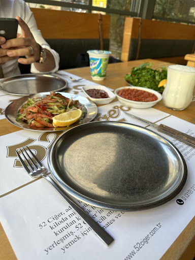 Read moreTavsiye üzerine emek bahcelide bulunan 52 ciger kebaba gittik...mahalle arasında şirin bir çöp şiş kebap sunumu yapan bir mekan..servis kağıtlarında mekan ismi hakkinda hikayesi çok hoş..lahmacun yediğim en iyisi diyebilirim harika bir lezzeti vardı..ciğer şiş harika ve sulu yan ikram mezeler tam tadında ve yeterliydi.acılı şalgam nerden aliniyorsa yıllardan sonra hakiki salgam içtim.hele o balon pidesi yokmu pof pof harika sıcacık geldi masaya sadece onu yemeye giderim desem yeri var.servisteki yaşlı garson abimize teşekkür ederim hoş sohbeti için..vale hizmeti veren kardeşimizin dışarda bize mahallede çekilen eski yesilcam filmini anlatması ve sıcak uğurlaması içinde ayrıca teşekkür ederim...tekrar dostlarımla beraber geleceğim ve tavsiyemi çevreme anlatacağım..teşekkürler 52 ciğer biz memnun kaldık gerisimi...