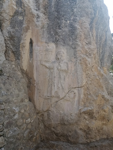 Tanrıça figürlerinin sonunda, ana sahnenin karşısında bu açık hava tapınağının en büyük figürü IV. Tuthaliya bulunmaktadır.