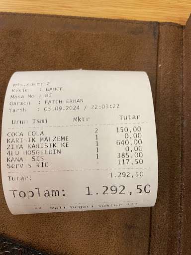Read moreI wish I took a picture of the dirty forks and spoons they had on the table. I had ask them to change them twice and they were again dirty. They had dried food remnants on them. I had to go wash my own utensils so that I can eat. It was 4 of us and they started serving food in the most humiliating way where they go around every 15 minutes give u a tiny piece of Kebab and then 15 min later another piece and you need to wait till they decide to offer you the rest of your food. People don’t even feed their pets like that! They have no idea what appropriate food serving is. I asked the waiters a couple of times about items in the menu, they had no idea what they were! Why put em in the menu when you don’t even know what they are?! It seems that this place was good at some point and since it built its reputation, they stopped caring about customers satisfaction. I have been to multiple restaurants in Istanbul, this by far was the worst experience I had. Horrible service, Horrible head of waiters ( waiters were nice but not very experienced) The main person who was ‘distributing’ the food was rude, and disrespectful. Bottom line this is not a clean place, service is the worst I’ve...
