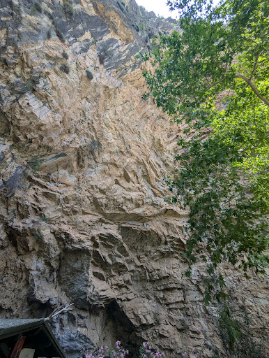 Once we boarded the boat (about 10 people per ride), we entered a truly magical underground world. Some rock formations looked like stalactites, and in one section, a natural stone bridge crosses the cave above the water. At the end of the route, we saw white mineral deposits flowing down the rock face – very similar to a miniature Pamukkale. These are likely travertine formations, created by calcium-rich water depositing over time.