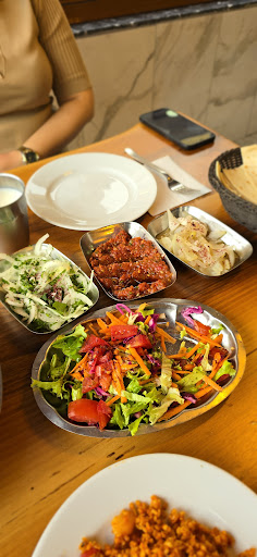 The side offerings are just as impressive: fresh salads, sumac onions, spicy tomato ezme, grilled vegetables, and frothy cold ayran make the table feel abundant and welcoming. The flatbreads are fresh and warm, and the service is fast and friendly. The ambiance is clean, cozy, and comfortable.