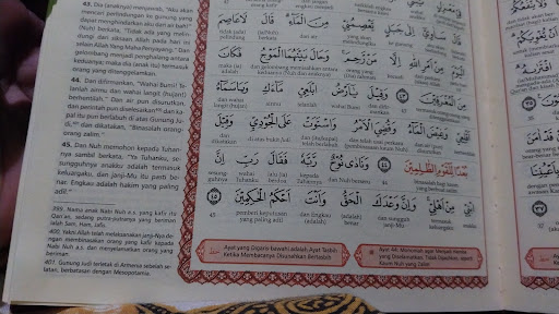ওয়া-কীলা ইয়াআরদুবলা‘ঈমাআকি ওয়া ইয়া-ছামাউআকলি‘ঈ ওয়া গীদাল মাউওয়াকুদিয়াল আমরু ওয়াছতাওয়াত ‘আলাল জুদিইয়ি ওয়া কীলা বু‘দাল লিলকাওমিজ্জা-লিমীন।