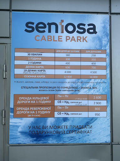 A fun place in Dnipro. There's a cable line that goes in a big loop. There are other cables attached to this main loop. You grab one of these attached cables and take a ride in circles. You can use skis or pay more for the wakeboard. Helmets and life jackets provided. You pay per hour. Water temperature was perfect when I went this summer, but watch out, water is green and dirty. The venue has a place for snacks with shaded outdoor seating, credit cards accepted, English speaking staff, showers had lockers but no way to lock them. And no privacy (shower doors are...
