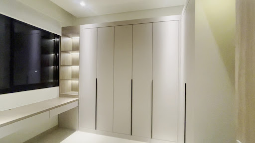 For instance, our shoe cabinet was built with each shelf at 27.8 cm height, reducing storage efficiency despite my request to maximise shelving. I also mentioned that the lowest shelf should be at least 40 cm in height to fit my husband’s work bag, but that was missed and later had to be rectified, extending installation time. Another issue arose in the pantry area, converted from a maid’s room. I had requested 20–30 cm of blank wall space to mount a Dyson vacuum and access the nearby light switch, but when the cabinets arrived, that space was fully occupied, leaving only a narrow 4 cm gap to reach the switch. Both study desks were also initially installed too high—at shoulder level when seated, an oversight that could have been prevented with more careful measurement review. There were also a few miscommunications regarding electrical outlets, which were at times blocked or overlooked during installation.