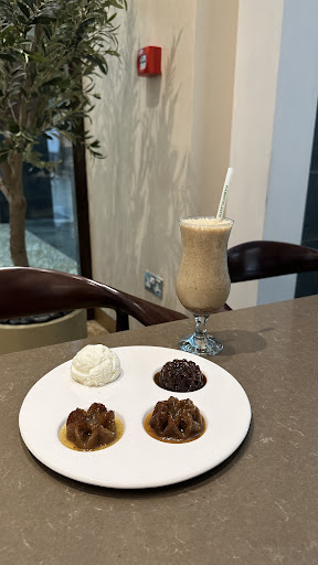Read moreBateel's Date Trilogy is a one-of-a-kind tasting experience featuring a trio of steamed date puddings. Each pudding is crafted using various Bateel organic dates and paired with a complementary nut and sauce: hazelnut & vanilla, pecan & cardamom, and walnut & coffee finished with fior di latte gelato