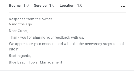 Unfortunately, we were bitterly disappointed this time. The apartments generally have serious maintenance and quality issues which should really be checked and sorted before handing over to fee paying guests. Much of the electrics and plumbing had issues from the evening we checked in. The bathroom kept flooding with dirty water but the cause could not be determined. After the cleaners did cleaning we went out for dinner returning after one hour to find the water back all over the bathroom floor again. There were so many things wrong and not working that by 11pm the management decided to move us to a different but equivalent apartment. We went to the new apartment only to find that that also had similar problems. By 1am we were advised to go back to the old apartment and move in the morning whilst the technicians worked on the electrics. These works continued until midday the following day as the issues were found to be more fundamental than originally thought. By the time we had moved into the new apartment and unpacked it was late afternoon. We had to cancel our day 1 plans for our holiday of 8 days - we basically lost one full day of our holiday and were even more exhausted than when we arrived! The management refused to compensate us for the loss and inconvenience - we having paid a nights stay plus loss of a days holiday. We were instead assured that “next time they will ensure that we have a better stay and would consider giving us better rates “. When escalated to one of the General Managers, he advised that at most he could give us a complimentary nights stay if we extend our stay by one day. However this would have meant us having to pay the airline penalties for changing six adult tickets - a cost that Blue Beach Tower were not prepared to compensate us for either. So in the end we had no choice but to stay there for the remaining holiday or lose our money. Absolute rubbish and totally...