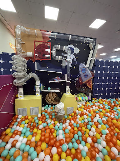 Toddler area included⌠:A fun little ball pit with air tubes for the balls to drop from.. and a carrousel of cute little zebras .. : Grocery store with little trolleys (need to a few more) : Kitchen area , that also included washing machine and cabinets : Dress up corner : Near the big kids area was a few rides that were adorable and the floor was lined up like a street