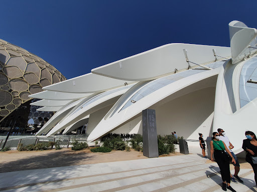 The famous Swiss-Spanish architect Santiago Calatrava design the stunning pavilion at UAE Dubai Expo 2020. The architecture was inspired by the shape of falcon's wings, more specifically "by a falcon in flight" a bird with a grace and force that played a crucial part in the traditional culture of United Arab Emirates. Designed "as a symbol of the UAE's pioneering spirit", the pavilion stands in the Opportunity District, near the central Al Wasl Plaza. Every aspect of the pavilion is representative of the host country, from the building's architecture to the surrounding landscape that has thousands of variety of plants that are growing in the UAE lands.