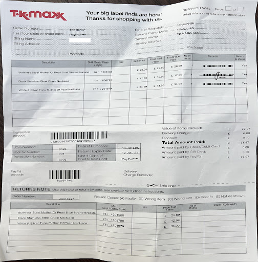 Later, I discovered a completely wrong item had been sent - I'd ordered a necklace but received a dress worth double the price. When I returned to the store, Leah refused to process the return and accused me of possibly swapping the item myself because I hadn't opened the parcel in-store, a "policy" I believed was not of TK Maxx. She even threatened to take the item without issuing any refund. I was shocked by both the accusation and her hostile tone.