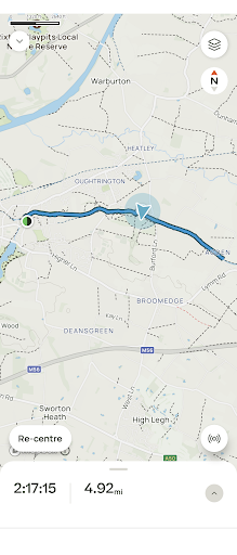 Parked in the car park of the Little Manor pub, not my first choice as landlords often rail at being treated like public car parks. I've even known some to clamp non-customers. However, there's not a lot of off-road spaces so I took a chance. Next time I'll investigate the Parish Hall opposite. The first half mile from the pub to the start of the trail is a bit of a meander but easy to follow on the AT App. The route proper is in two sections, each running parallel, the Trans Pennine Trail and the Bridgewater Canal. Which you take out and which back is up to you, I chose to start on the Trail. Being honest, this is just one straight, rather uninspiring pathway and I was glad to reach the end point. The towpath of the canal back was far more interesting and pleasant. The Trail path was largely wide tarmac or hard soil so very suitable for pushchairs or wheelchairs. The Tow Path not so much so; muddy patches, tree roots growing through and rough ground would make this difficult. No special footwear is needed but take clothing appropriate to the weather as there is little shelter on the way round. A good three star but mainly owing to the canal section.