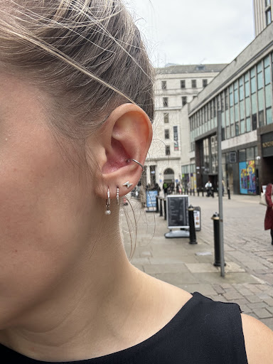 was barely waiting 5 mins before being seen. the guy who did the actual piercing had a very calm demeanor which helped massively. he dotted the placement, let me look in the mirror and allowed me to change it slightly without a fuss. he didnt take a second and went straight in with the first, which was amazing honestly, really helped with my nerves.