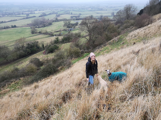This is a tricky white horse to get to. The best view of it is from afar and you can get a god view from the Church in broadtown. To get to the top of the hill you can either start from the bottom going up a side road and taking the footpath or you can drive to the top of the hill veering off into a side road again. This route is not clear but we managed to work it out. You see some fields... Follow the tracks around them to a corner with 2 gates. You can take either and both will lead you there. The wooded area takes you underneath the horse (you can't really see it there unless you do some very steep climbing whiwh we did) or you can go round the field and there is a stile where you climb over and the horse is there. It was a very...