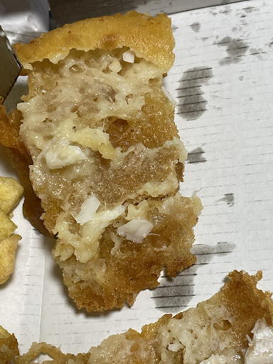 Fish batter is disgusting and cannot be eaten. Thick oily unnatural batter. Overcooked. Looked like a lump of wood. The amount of oil that came In The bag was unacceptable.