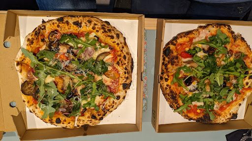 The pizza is divine, but the ordering process is an utter shambles. Went last week, and they left a load of toppings off. Tried again this week. I pre-ordered for 6.15pm, turned up on time, and had to wait half an hour. Meanwhile people in the queue are being quoted 20 minutes. When my pizzas were ready, i watched them cool on the counter for 10 minutes while the guy doing front-of-house took more phone orders and joked about "if you order now, maybe it will be ready tomorrow!" Took them home to discover they're completely the wrong pizzas - my veggie mrs didn't fancy a meat feast, for some reason.