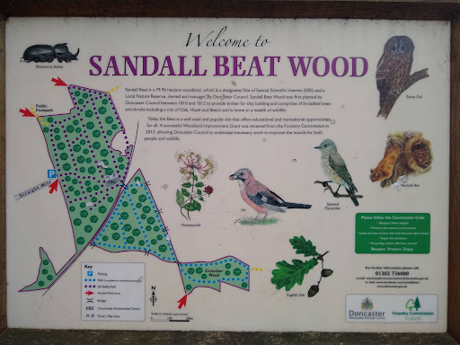 Read moreSmall free car park and plenty of room to park along the race course. Good variety of woodland paths, including level and firm surfaces underfoot. Lovely in Autumn but take care when tree roots/ stumps can be covered with leaves. Options to extend the walk onto a former pit stack over the railway line. Children's play area. Very good area for dog walking, push chairs. See also, the Sandal beat environment centre and woods Facebook page. Had no problems tracking our...