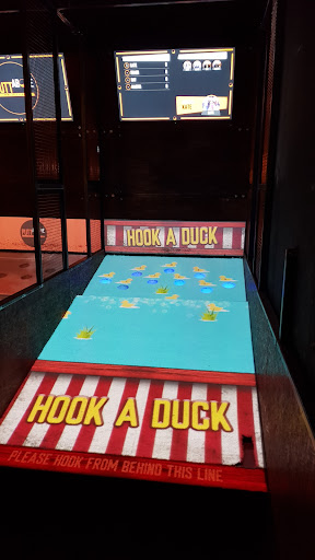 Like mini golf but all in one lane, not a course that you move around. The projector changes the game but it’s the same holes each time. Interesting concept but think it could be improved a little. Not sure how possible this is but maybe within the lane the holes could move around or change in some way because it did get a little boring after half an hour.