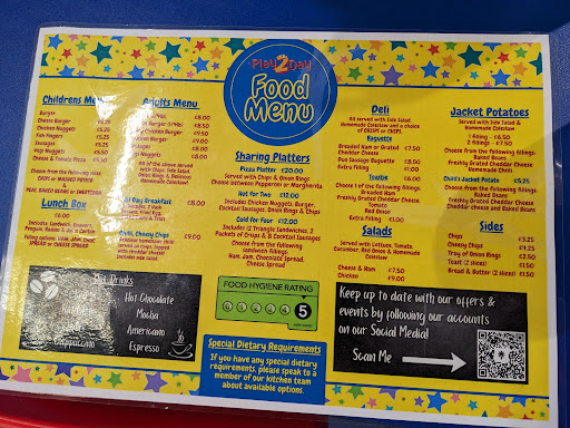 We came across Play2day when I drove up from London to collect some things for my business. The children were with me and we went to play2day. This is one of the best indoor play areas I have been to. There are two large climbing multi level frames one with cockpits of cars, planes and other vehicles at the end of tunnels and the cockpits move a bit which is fun. There is a bouncy castle also and a super slide which is almost vertical and loads of fun even if it took my kids the better part of half an hour to go down it. Once they went down they wouldn't stop. There is a laser tag room which only costs £2.50 which is a great price. You can buy socks at the desk if you forget and they are not overpriced. There is a cafeteria with all kinds of eating options from sandwiches to pizzas and full breakfast. The meals all have a child's and adult option priced accordingly. There is so much seating space that you never feel crowded. The play area is in a huge building and it feels open and airy instead of some that feel compact and stuffy. The toilets are spacious bright and clean. The staff are great and all seem to be in a great mood. This is the second time we came here, again to collect something, and the children insisted that we come here again. They are happily playing away. Another good thing is that the price allows you to stay as low no as you like not like some where you only get a couple of hours. This is a top play area and highly...