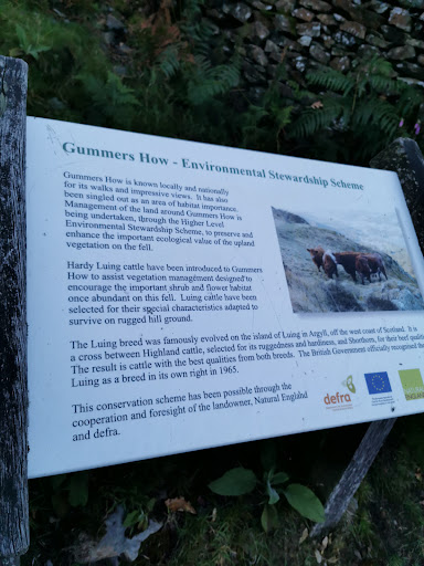 Superb views. Parked at gummers how car park, crossed the road and straight onto the path and heading up towards the summit. The walk up is perhaps 45 degrees of stone, misshapen steps that take a degree of attention, and lastly a bit of grassy trek to the very peak. It is very fair to say that for that (compared to some) climbs, i DID NOT expect THAT view, as when the mist begun to lift suddenly it became apparent I was looking hundreds of feet down into lake windamere and it was pretty mind blowing as I hadn't expected it to be there BUT it was, AND it was spectacular. Even the cows on this walk are the nicest looking I've ever seen in my life and don't even seem to notice you there (which is good - as I don't like cows, especially horned ones), but overall, for a reasonably quick walk with maximum views then this is a 5 star walk you CANNOT miss. It is not suitable for prams etc or maybe very small children but I'm sure will provide views you will...