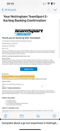 Read moreAbsolutely shocking. Don't waste your money for the following reasons: Spending your money on two sessions of 15 minutes each will get you about 7 minutes of green racing time in total. Even then, you are lucky to get a full lap on green. Staff stop the race regularly and delay the amber light turning back to green even when the issue on track has been rectified. We were there for three hours to get the above 8 minutes of racing time today, so it takes up a full evening. Your 15 minutes starts when the first car comes out the pits. It takes a while to get everyone out, one race I watched took over 7 minutes to get everyone out before the race went to green from amber. So that last person out would have only got 8 mins of track time, and everyone would have got a max of 8 mins of racing, however... They call you in a few minutes from the end of the race. I asked at reception if this was normal and was told 1 to 1.5 minutes is the norm, but the race I watched they were all in the pits with 1 minutes and 7 seconds left. They stopped the race on a red light just to talk to one driver for nearly two minutes, why not just bring that driver in the pits for a word? Apparently the timing is done on sensors which are automatic, but this seems to fail because they are haphazard with regards to start times for different races. When I explained this to reception they said the times start when the first car comes out, but their camera footage would show otherwise. When I asked reception how timings would work they confirmed all the above, that the time starts when the first car comes out (even though other cars were stuck behind empty cars on the pit which takes up more time, it's as if they don't want you to get much time racing), and that you come in 1 to 1.5 mins from the end. To fix the problem of having hardly any time on track I was then told to sign up and pay for an annual membership, which would get me 20% off karting and I could go on a Monday night for members which would be better drivers. Great solution TeamSport, I would love to give you more money now. I was told this was how all go karting tracks work, however, we have been to other tracks and some charge on a lap basis. You don't get stopped a fraction as much as at TeamSport.