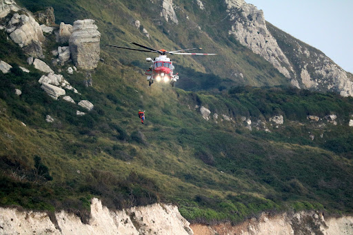 Anchored off beach for the night in very calm weather. Witnessed helicopter rescue from the cliff. ...