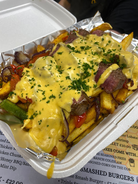 Ordered a burger meal, burger was great but chips aren’t too good. Also got chicken chunks with it which were ok but pretty dry, you would need a sauce with them. Had steak and chips with blue cheese sauce, these chips were nice but only really because of the sauce they were drowned in, steak was very dry though and it’s well done. The portion size is huge though, could’ve just had this and nothing else. Broccoli was hard however the garlic butter with it was nice. Biggest peeve is that they advertise garlic and chilli king prawns, and for £7 I would expect proper king prawns, not 5 packet ones that have been tossed in some garlic and chilli oil. Cheaper than that in a restaurant and you would get proper prawns too. Glad we tried but likely...