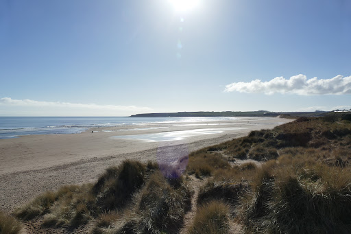 Read moreSurely one of the best beaches on the entire east coast , a long 2 miles of golden sand with rocks and caves at the northern end and a ruined castle overlooking the central part . A large car park at the end of a narrow lane was busy enough for our visit on a March Sunday so I can only surmise about how packed a summer Saturday would be , still with the car park 3/4 full the beach seemed empty with lots of space between everybody as the beach is so large, theres a nice viewing platform as you join the beach to take in the views , we will definitely be back to explore the southern end on the other side of...