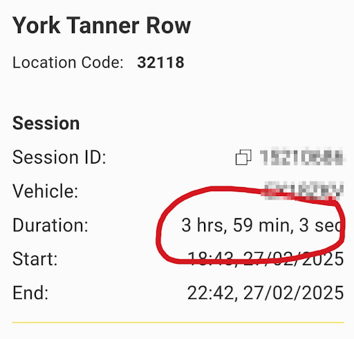 We just got out before being charged the higher price (according to the app, it was with 57 seconds to spare), hampered by the fact the entrance with the lift was locked at 10:40pm meaning me, a wheelchair user, had to go round the building and in up the very steep entry ramp to get to my car...why was this entrance locked so early?
