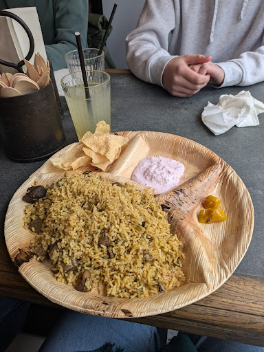 We went on Sunday as a family of four. We had so wanted to just love it, based on the menu and the need for this kind of thing in Taunton. We were underwhelmed. We ordered off the menu ie, no adjustments just as advertised. Quite quickly we received my husband's food and daughter's drink.a clear ten minutes later, when despite eating very slowly, my husband had finished his, my son's drink arrived, followed shortly by the other two. Another 5 minutes or so and the rest of the food came. It was all very tasty, although I would say varied a lot in terms of value for money. I had the biryani and got the tiniest dot of pickle. Pictured. Shame as it was delicious this was made weirder as when I complimented it at the end, I was promptly and kindly given a decent sized tub of it to take home,. I'd rather have had it with my meal. For us the social element of eating is very important, this was ruined by the food arriving the way it did and not helped by the volume of the music and the TV screen. Please fix this. Street food should be fast and arrive at roughly the same time. The flavours are wonderful but be more generous with sides like chutney...