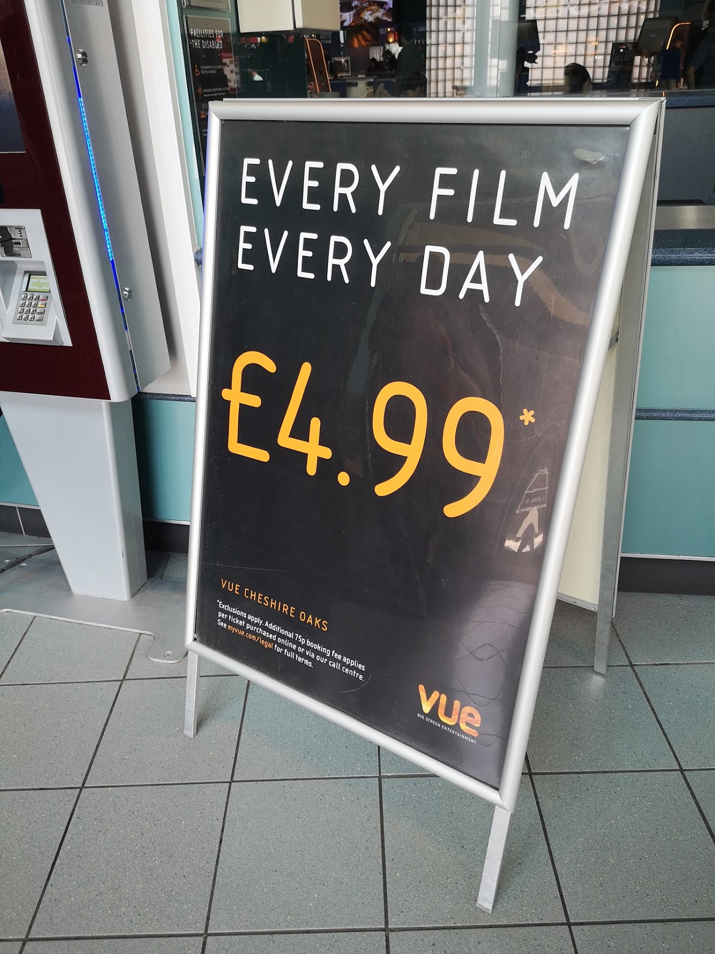 Always great seats(all recliners) so plenty of space to walk past viewers who are already seated without disturbing them. Prices for seats are quite reasonable too compared to other cinema outlets and their own previous pricing. Always clean and plenty of toilets. Queues for popcorn can be quite long especially if people are also queuing there to buy their tickets.... would be better to go back to dedicated ticket aisles at peak times in my opinion( i realise they sell them at the popcorn stalls to try to increase profits from selling sweets). Fair variety of Popcorn and sweets and ice cream.. but at inflated prices sadly. I'm sure they'd sell more if they were better priced.( again i realise smaller profit margin, but if you sold more, then you'd still make a profit). Staff always polite. Good venue, ideally placed for Cheshire oaks and the coliseum retail parks, with plenty of places to eat, places to stay and not far from chester zoo and 2 minutes from the motorway.