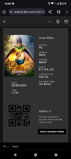 Read moreI took out the £9.99 per month deal. You can watch as many films as you want. I even watch 2 movies one after the other, on the same day. If the film is over before 9pm then you get upto 3 hrs free parking in the multi story carpark. You take your parking ticket to the reception where they sell the popcorn and they will pay the fee for you. If you watch more than one movie then after the first one is finished, get your parking ticket paid, leave the carpark and go around the roundabout, then re enter the same carpark and even park in the same place and collect a frresh parking ticket, for another free 3 hours parking. Your £9.99 pass allows you access to any omiplex cinema in Northern Ireland. They also do passes for the republic but they cost €15 per month. The cinema itself is a all arnchair, recliner seats, but the Toilets are showing a bit of wear and tear. They have one screen for 3D movies and 1 imax type screen but i dont like the corridor that runs down the middle of these. I prefer the smaller screens where the corridors at at the sides and i can sit in the middle. You can only watch each movie once but if a movie is in 3D, 2D & imax then you can watch all 3...