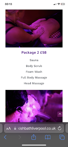 £58 for package 2 which is a shower , sauna a rinse and a bubble scrub and massage . A head massage or a facial. Ok sauna was about 6 mins with a glass of water to consume , straight into the Turkish bath area were I got 6 scoops of water on my body (1 on each leg)(1 on each arm)(1 on the back and 1 on the chest and stomach) Then plastic bucket with foamy bubbles on a cloth wiped very lightly on the body then a rinse again then straight to the massage table we’re I was just moisturised with baby oil no massage what so ever(just moisturised on wet skin) I opted for a head massage not a facial. The masseuse rubbed my forehead for 5 minutes. Then I got told to get up and chill on a lounger we’re a lemon tea and 4 small cubes of Turkish delight were presented to me . Start to finish 25 mins and £58 down. By the way you have to give 48 hour’s notice to cancel or re arrange otherwise you loose your money . They take the full payment when booking. I WOULD NOT RECOMMEND Any Thai massage for 30 mins is more money’s worth. I can do a better job to shower myself and moisturise myself without the £58 bill What a SCAM NEVER EVER AGAIN Leave it to you guys to make your choice I’m just giving you my own true opinion But seriously...