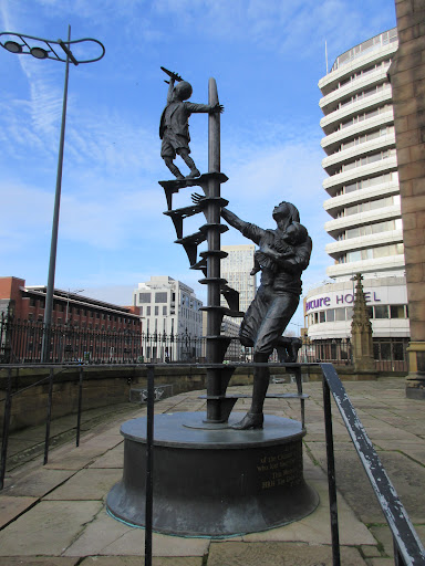 Read moreA poignant statue to the civilian Liverpudlian lives lost during the German Blitz on this strategically important city in World War Two. The young child at the top of the stairs is holding a model of German Heinkel 111 bomber high above his head. This is a thought provoking touch. I recommend visiting here both to view this statue, the surrounding War Memorials and the peaceful gardens...
