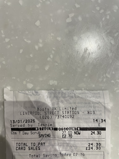 Read moreI am writing a complaint regarding the customer service from the manager and the dismissive and foul behaviour from the security guard. Today morning at approx. 9AM, I had a foreign business guest with me who wanted to purchase some items from Boots. When we first entered, one of the staff members looked at us bad and quite weird, and later we were approached by the security guard called "Prince" from TSS who told us to move out the way due to allegedly blocking a customers view of products although not being true. The procedure from the security guard was unprofessional and we felt as if we were being harassed due to our race. However we followed his instructions and carried on with our shopping yet he continuously was still following our movements around Boots to the point we were getting quite frustrated. Furthermore, this had not been the first time as my sister was also being followed by the same security guard last time she shopped here, which is quite sad due to us being regular customers of Boots. Therefore, I called for the manager named 'Nadia' and told her our situation with the security guard where she took no further actions and mentioned that he is patrolling around the shop even though he was quite clearly following us, that could be seen on the CCTV cameras. This felt as if she ordered the security guard to follow us until we exited the store. Ultimately, I would like a potential investigation of our horrific shopping experience although purchasing a large quantity of items and please me know of...