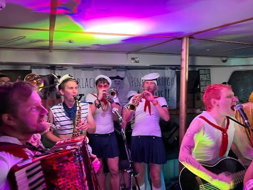 However, just a word of warning to people organising an event. Do be very very careful with decorations. I hung a wetsuit from a chain of a disco light and unfortunately I think someone pulled the costume and it disconnected the light. The light was still attached to the boat and didn’t fall off but we had an email saying we needed to replace the disco light. This is absolutely fair enough. The cost was £170 for the light and £240 for the electrician to fit it, a total of £410.