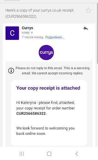 The problem with Currys is, you cannot contact any of their stores directly. It will simply ring and ring, without an answer. Then the call goes straight to their head office/customer care department, which makes the experience even worse.