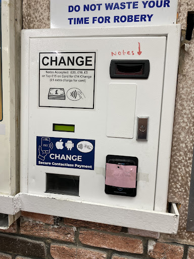 Read moreNo-frills laundromat. Good for travelers. Friendly service. Come prepared with coins, or cash - as of Feb 2024, the card tap on the change machine is broken, and the machines only take coins. For the laundry machines - £2, £1, 50p, and 20p coins are accepted. For the change machine - despite the broken card tap, it should accept £20, £10, and £5 notes. There’s both a post office and a Tesco ATM nearby.
