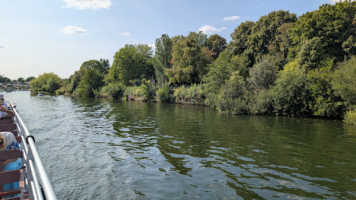 What to do on an extremely hot, very sunny, and incredibly humid Sunday? We decided to catch the public boat from Hampton Court to Richmond. Just one of many trips and locations. We were not disappointed! Oh, cruising along on the top deck, the breeze was just perfect. We could forget about the humidity for an hour and a half! Highly recommend a trip, it was so different to anything else. Be mindful, the directions to the landing stage are excellent, but there's a couple of different company's boarding points - make sure you read the signs properly. Thames River Boats is practically parallel to the Palace, and it has a small hut. The vessel was bang on time. No problems getting en board and very safe. Once seated, our captain gave a short but obviously essential safety talk. Boring.. not! Our captain was absolutely hysterical! Thankfully, there wasn't much commentary, but when he did, it was so funny! Essential: Bar (reasonably priced) and toilets below deck, albeit a different flushing system. The 90 minutes flew by. Extremely relaxing, plenty to see and going through the lock at Teddington was interesting. We took a one way trip only to Richmond. Drop off point is just before the main, traffic bridge, not by the White Swan pub (which I assumed it would). All of a 5 minute stroll. I wish I'd got our host's name, but sadly, I didn't. £14 one way. As a treat, well worth it. Value for money and a great trip for locals and visitors alike. Just a couple of landmarks along the way. P.S. return journeys are readily available. We chose to take the ferry/boat to Richmond, enjoy the Riverside, then catch the bus home. 20 minutes was far more attractive towards the...