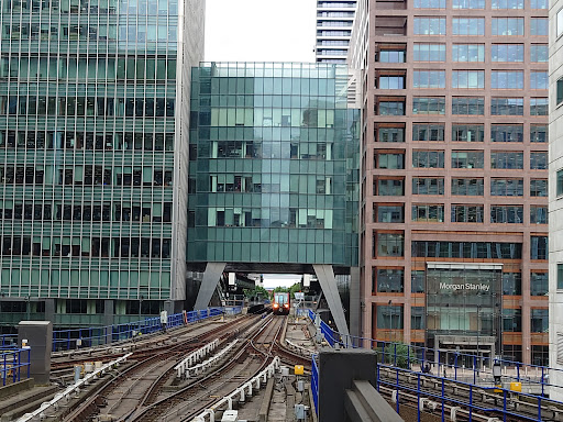 An interesting location to build a DLR station which looks futuristic, as this is the only one on the network that passes through a skyscraper. The lifts give nostalgia vibes, as they look similar to the translucent plastic used to make the iMac G3 Macintosh personal computers that Apple Inc. sold from 1998 to 2003. At concourse level if you look up, you'll notice that underneath the platforms there is a round base shape which looks like the belly of an aquatic placental marine mammal such as a whale. Interestingly, it's located closer to the Jubilee line station of Canary Wharf than the DLR station of Canary Wharf is, and this is one of the few DLR stations which offers three ways to reach and leave the platforms (by escalator, by stairs, or by lift). In addition, the floor of all DLR trains is the same height as both platforms. Unfortunately, both lifts have only one doorway for entry and exit, and the doorways are narrow, which may pose difficulties for wheelchair users and passengers...