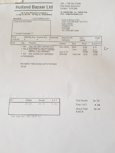 Read moreDear customers of Holland Bazaar, I would like to share my bad experience with that company. I went to buy some necessary things for our kitchen and I was happy to find those things in Holland Bazaar. I bought a coffee pot, a can opener and a salt grinder. The tiller issued an invoice and put everything in a bag including invoice and sealed the bag. When I came back at home, I opened the bag in order to show my wife what I bought for our kitchen I saw that the tiller had added Master Meat Knife which I had not ordered even I had not mentioned at all but I was charged for. Unfortunately, I was so disappointed by being cheated in such an unpleasant way that I couldn't enjoy the things I chose and bought for our kitchen with the intention to make my wife happy.