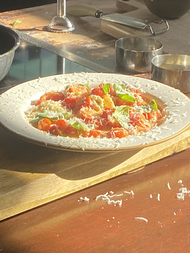 Our teacher was James, who unfortunately had no energy and very minimal enthusiasm. I wasn’t even sure when he started teaching, with no music, no introduction - just cooked at us for 30 minutes. He chaotically hopped from one thing to the next without really explaining much technique or general reasoning- not even explaining all the ingredients as he was using them.