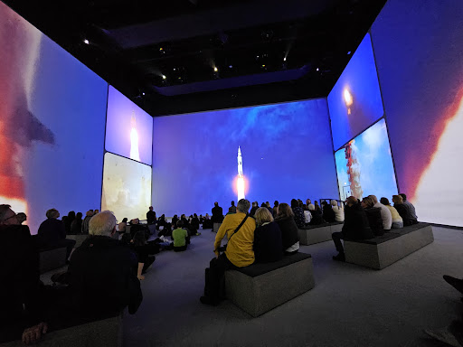 Read moreThis was a beautiful exhibition and the venue has such potential to be a comfortable and welcoming venue for families, however, we left in tears after rude treatment from the staff. I visited with my daughters ages 4 and 7, and a friend with children aged 9 and 5, on a Monday during half term. On arrival we were met with stoney faces telling us that the children would have to stay close to us at all times (happy to do this, but the delivery was a red flag!). The cafe had 3 types of ready made sandwiches with mustard etc, in, so we had croissants for lunch, fine. After more stoney-faced scowling at the children, we went into the exhibition space, which was beautiful. It's hard to find a large, enclosed, safe, carpeted area in central London like this. This could be perfect for young children, however the staff seems to be working hard to make it a hostile environment for them! My eldest did some cartwheels and my youngest was spinning around in the lights and music. We were told off 6 times by staff, asking the children to be "mainly sitting down.". My eldest was really upset. My youngest didn't really understand and I had to keep asking her over and over to be still. We were sitting at the back, and the only two groups who noticed looked over sympathetically and said that they hadn't minded the girls moving around. I think if the venue is serious about welcoming families, they should employ or train staff to understand the needs of families. This could be a haven for tired parents, inspiring creative children, however it is currently run by young officious people...