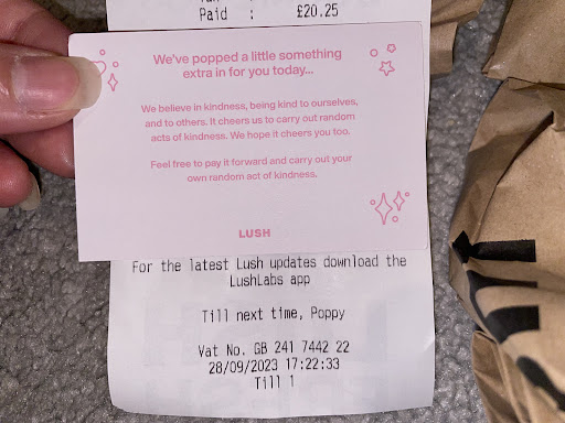 I also got an extra product as part of Lush’s “Random Acts of Kindness” project, and I was so pleasantly surprised to know about this movement from Lush.