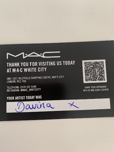 I now have a complete set of makeup that feels tailored to me, and I couldn’t be happier. From now on, I’ll be coming back to MAC specifically to see Davina. She’s a gem, and MAC is lucky to have her. Thank...