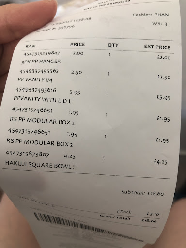 Read moreI have been there today and wanted to buy a T-shirt. When I paid,, the casher said I need an id card to show. I had a just student ID. Who carries a passport with them in the UK? She said it is not acceptible after asking the manager next to her. I asked the resaon and the cashier answered, "The manager said "no" without a right explination. I have never expirienced that I have to show ID when I pay by a card (verified by signiture) without any acceptible explination. After paying it, I returned to the store to refund as I had an unpleasant feeling and did not want to have it anymore. The manager was still rude and arrogant saying "This is "Muji policy". I understand they have a certain policy but if they have an unusal one, they should explane it in a kind way rather than just saying "No". I used to like Myji before, but I certainly dont want to go back again. A manager is not the one who command customers or to be arrogant against them. The manager in the store should have been trained better. I definitely do not recomment...